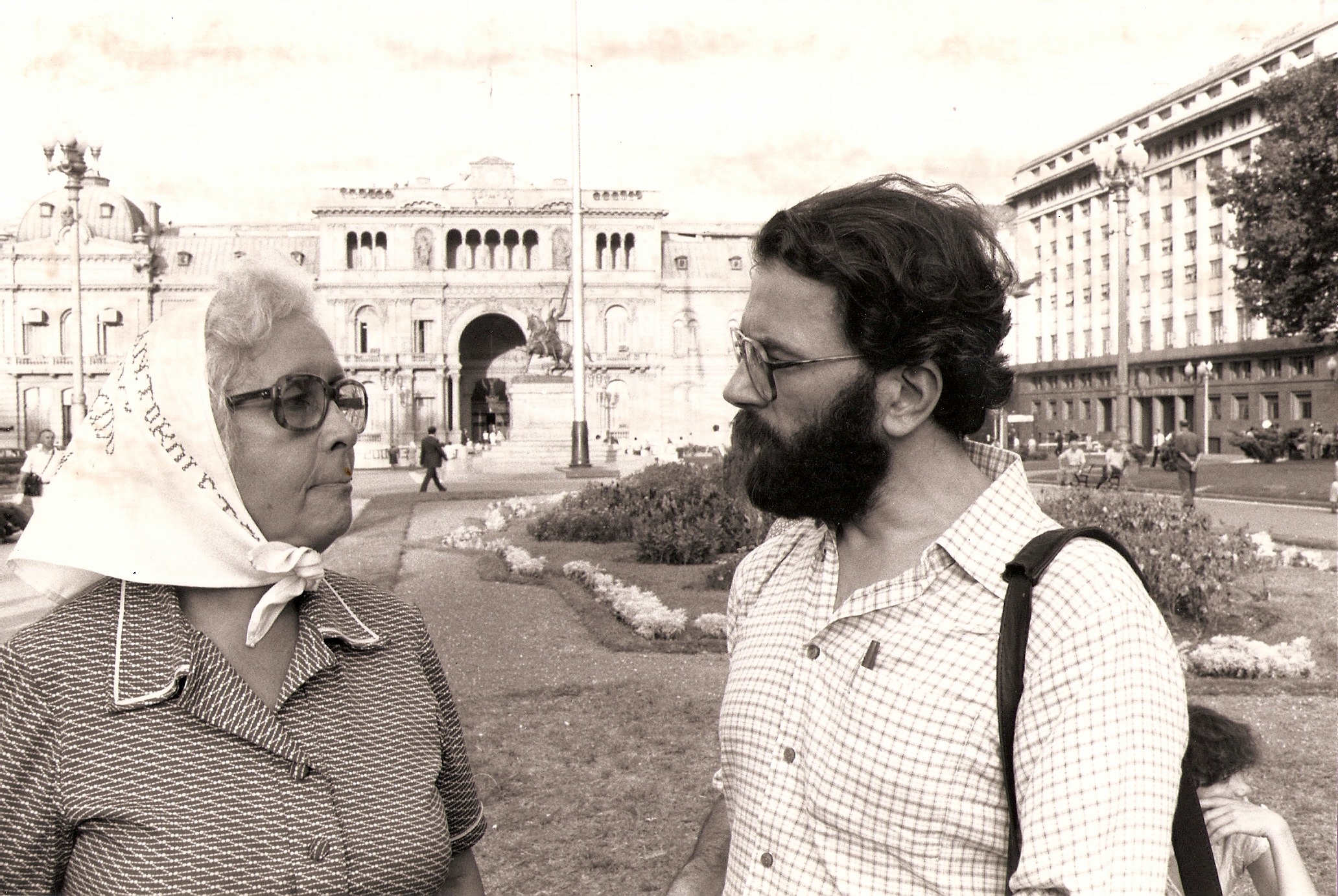 tomada por Irene Barky el primer jueves que está en Argentina concurre a la marcha de las Madres en Plaza de Mayo" año 84 |