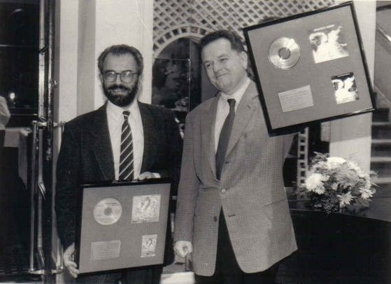 Con su compañero Luis Roca y Pocho productor de Los Piojos |